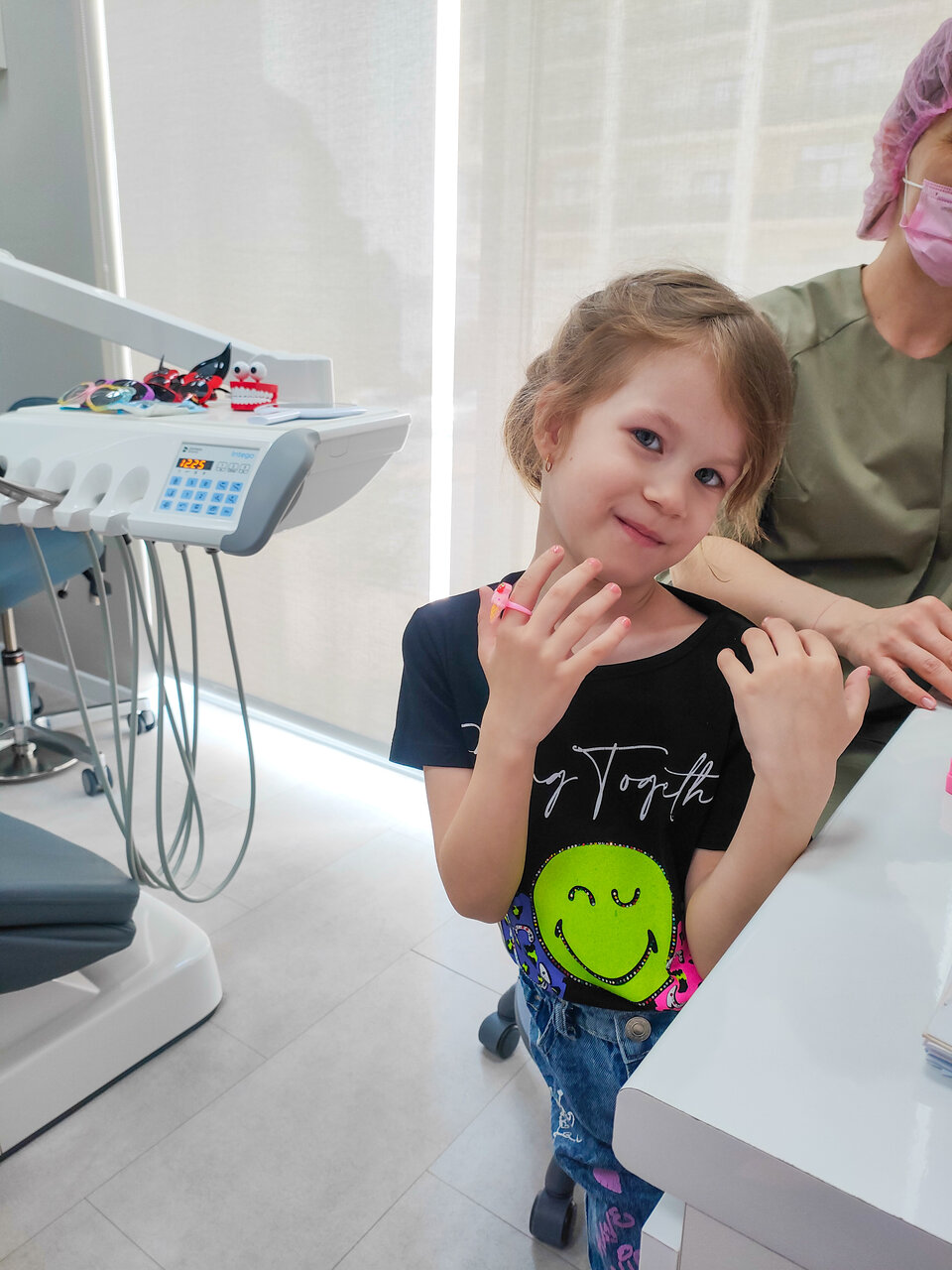 Очень хорошая клиника. Вожу дочку сюда с трёх лет, сейчас нам семь уже. Как первый раз пришли на прием к Абросимовой Марии Николаевне и до сих пор только к ней. Самая добрая, вежливая,аккуратная, нашла подход к дочери,дочка очень её любит. Я очень рада,что несколько лет назад мы попали на прием именно к Марии Николаевне, психика моего ребенка мне дороже любых денег, не пришлось травмировать ее походом в гос стоматологию. Аппаратура вся новая, материалы качественные. Пломбы на долго прослужат. С каждым походом дочка совершенно не боится идти,хоть и лечили глубокий кариес,и удаляли нервы ,и удаляли зуб. Персонал весь приветливый, администраторы вежливые, всегда заранее позвонят, напомнят о посещении. Всегда предложат чай/кофе.