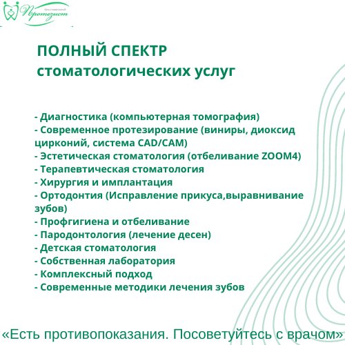 Скачать прайс-лист Протезист на октябрь 2025 годаАдрес стоматологии на карте