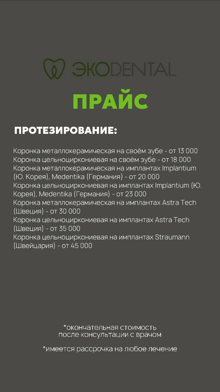 ЭкоDental гарантирует высокое качество услуг и заботится о здоровье и комфорте своих пациентов.