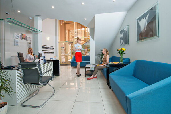 - Современный и эстетичный внешний вид клиники (костюмы врачей, администраторы).