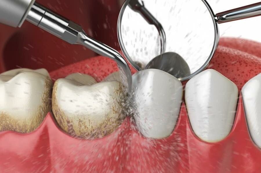 - Оставшиеся зубные камни после чистки.