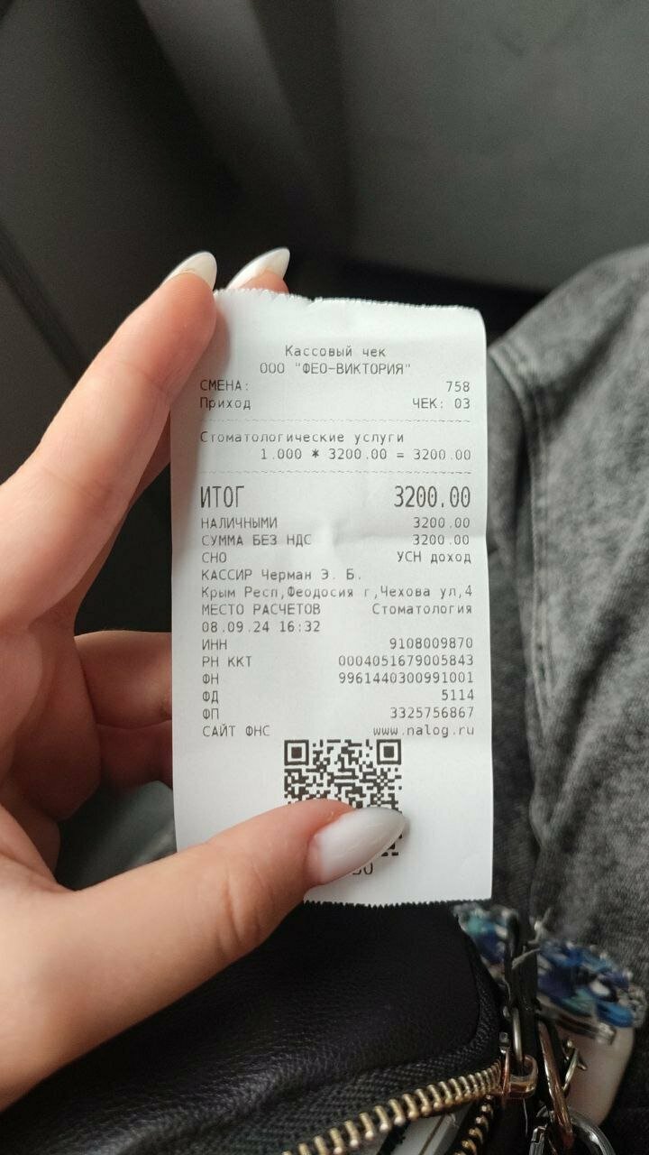 Моя двадцатилетняя дочь сегодня получила медицинские услуги, на запрос договора, ей было отказано. В чеке, выданном дочери были указаны общие услуги. Ничего не расписано. Медицинская организация обязана выдавать договор на оказанные услуги. А также цитирую выдержку из решения конституционного суда Российской Федерации ’Из наименования услуги в чеке на медицинскую услугу потребитель с достоверностью должен определить вид оказанной медицинской услуги, а не общую направленность деятельности организации’. То есть все услуги должны быть чётко расписаны в чеке. Если у вас технически это невозможно, выдавайте чек от руки. Также замечу, что цены в данной клинике довольно завышены. Обратились сюда из-за срочности, почитав отзывы. Хотя опять же, я не могу дать оценку выполненной работы, так как в чеке я не увидела за что такая цена. Возможно кассир ошиблась? Обычно лечим гораздо в более профессиональной клинике, есть с чем сравнить.
