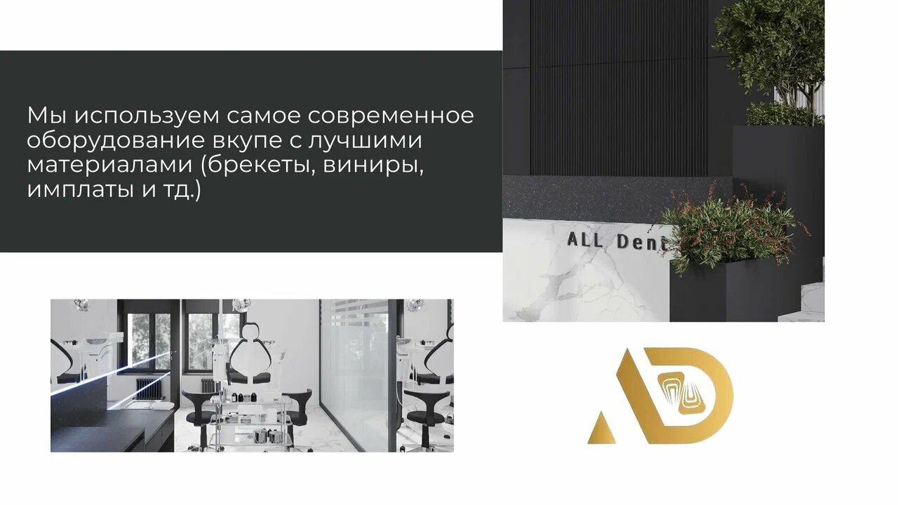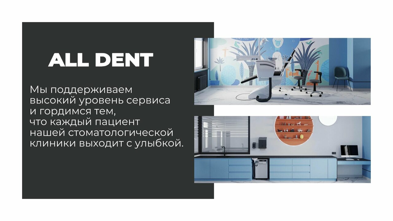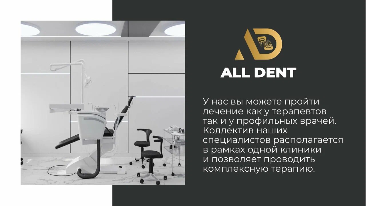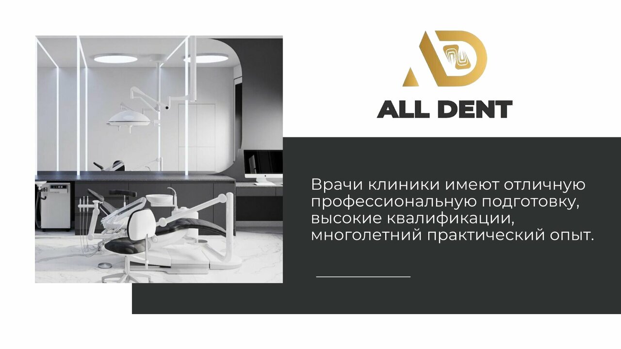 All Dent заботится о комфорте своих пациентов, предлагая качественное лечение, акции и скидки, а также услуги детского стоматолога. Профессиональные врачи, включая ортодонтов, имплантологов и челюстно-лицевых хирургов, обеспечивают индивидуальный подход и эффективное решение стоматологических проблем.