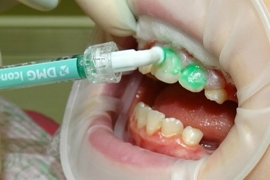 - Местное применение реминерализирующих препаратов е области одного зуба препаратом ICON 1000₽
