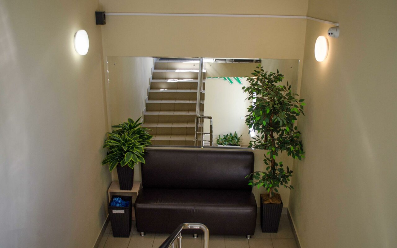 Клиника частично доступна для маломобильных пациентов: есть пандус и парковка для людей с инвалидностью, но вход на коляске затруднен. Предусмотрена предварительная запись и кнопка вызова персонала.