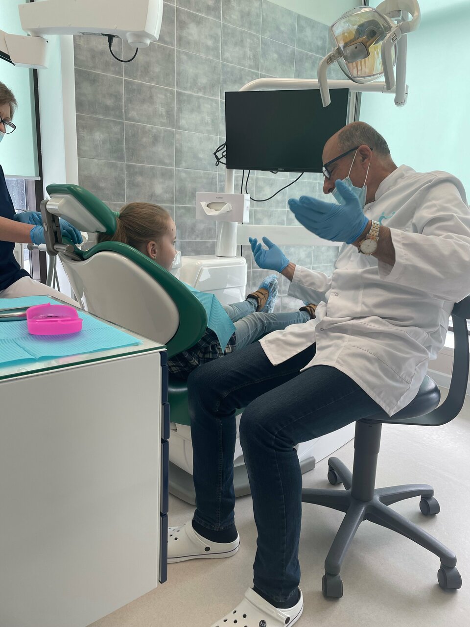- Современная клиника с удобствами (массажное кресло, детская зона).