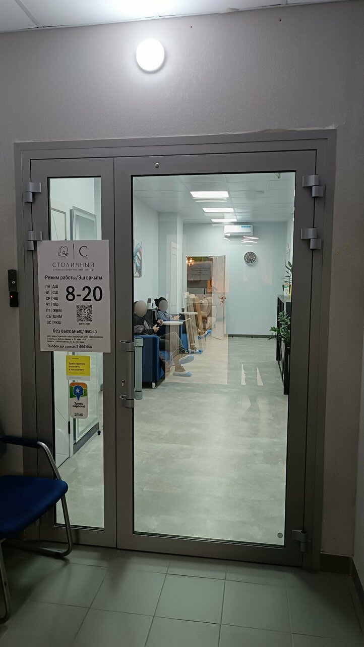 Режим работы стоматологии — ежедневно с 08:00 до 20:00. Записаться на прием можно по телефонам +7 (987) 296-65-56 и +7 (843) 296-65-56 или через сайт https://stolichnyi16.ru/. В клинике доступны различные способы оплаты, включая наличные, безналичный расчет, СБП, QR-код и оплату картой. Также предоставляется лечение в рассрочку и подарочные сертификаты.