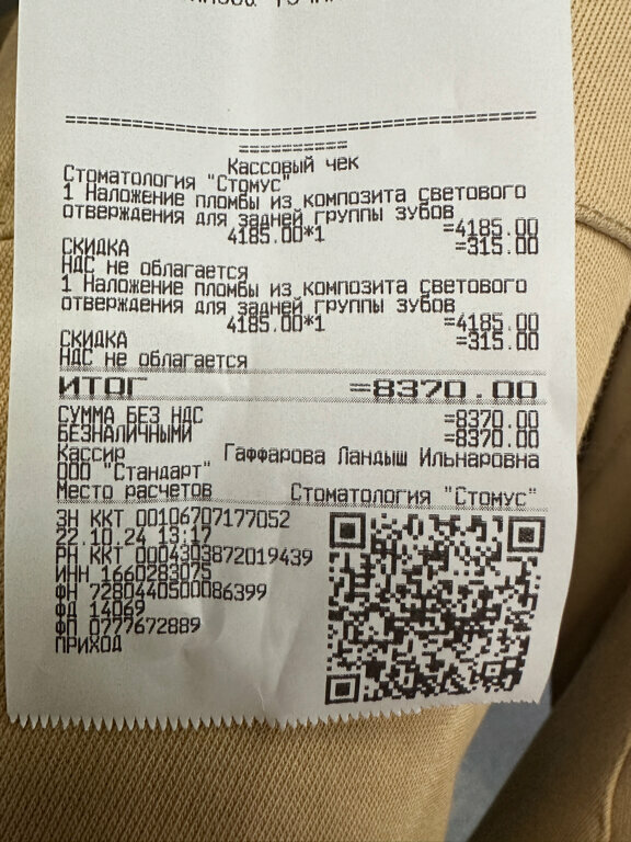 Огромное спасибо клинике Стомус , не очень дорого по нынешнем ценам и качественно ) Приятный персонал и в целом обслуживание )