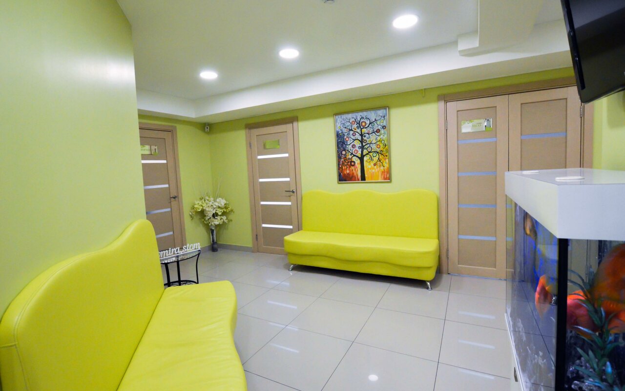 Любимая стоматология дочки 🫶🏽 Чисто, уютно и красиво. Для детей есть зона ожидания в игровом формате 👍🏽 для взрослых есть relax-уголок с очень красивым аквариумом. После каждого лечебного посещения стоматолога деткам выдают жетончик , который можно обменять в автомате на игрушку. Фамилию стоматолога не скажу, буду жадиной😅 итак всегда очередь на месяц вперед у нее, не попасть 🙈🥰