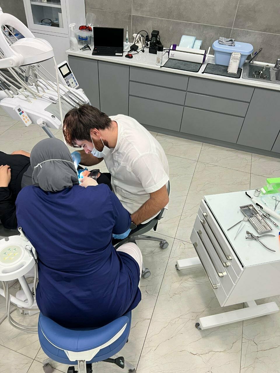 На приёме у Асият Хизроевна. Красивая, добрая, найдёт к детям подход, отличная работа. А сама клиника неплохая, жалко что комната для намаза не было