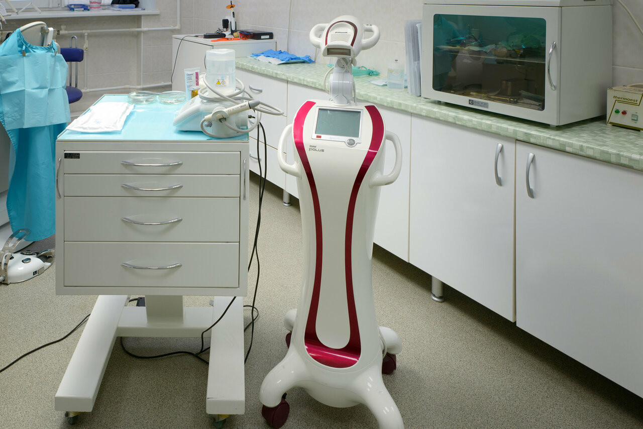 Клиника оснащена современным оборудованием, что позволяет проводить лечение безболезненно и эффективно. Для детей предусмотрен отдельный кабинет. Вход в помещение частично доступен для людей на инвалидных колясках. Дополнительные удобства включают парковку, акции и спецпредложения, а также кнопку вызова персонала.