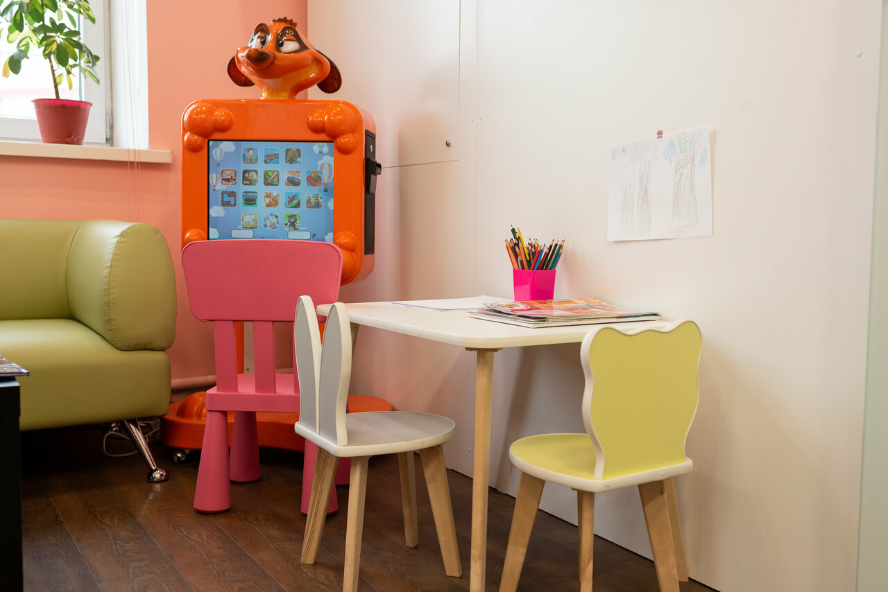 - Игровая зона для детей (игрушки, автомат).
