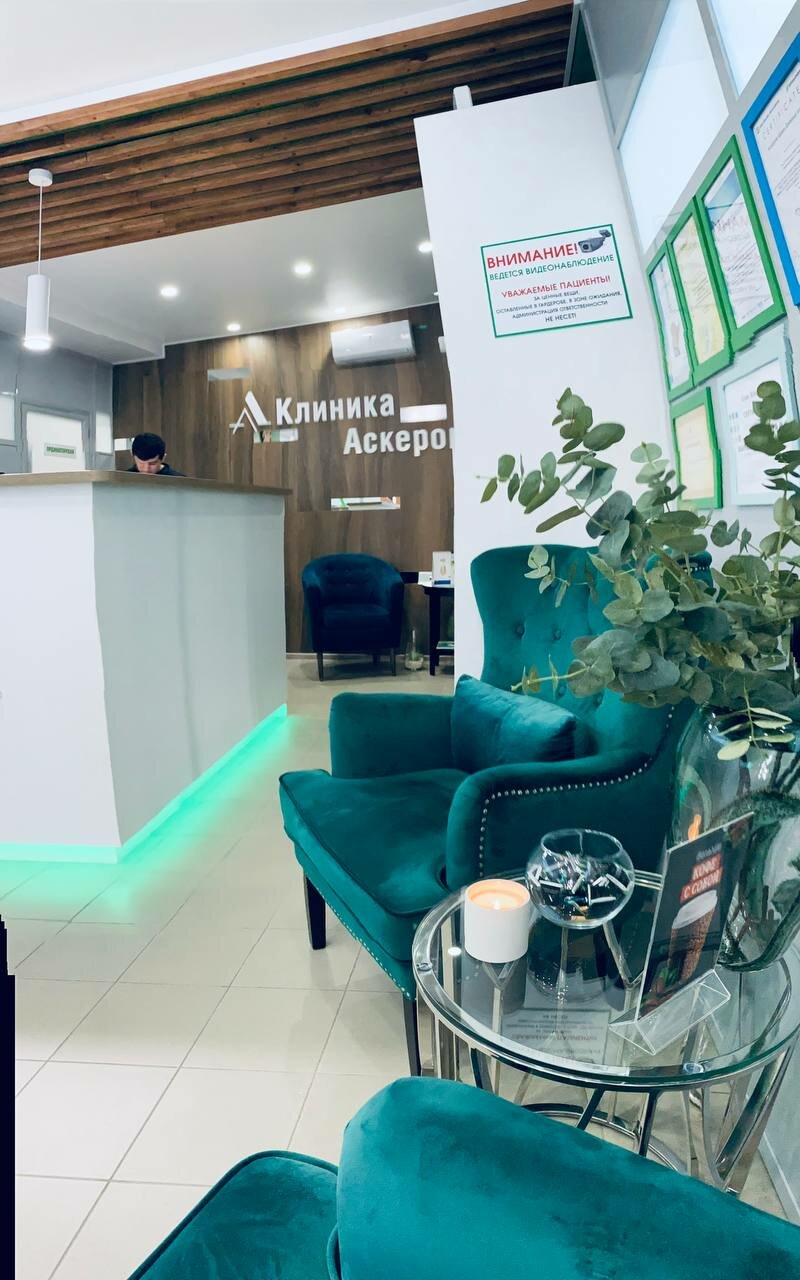 Самая лучшая клиника. Администратор девушка просто золото. Врачи грамотные, мастера саоего дела. Особая благодарность Эльаире Ивановне, за ее работу, внимание. Благодарность огромная медсестре. Желаю только процветания вашей клинике. Клиника доктора Аскерова, лучшая. Приходите и Вы не пожалеете, что лечились у них. Спаибо за Вашу доброту к пациентам.