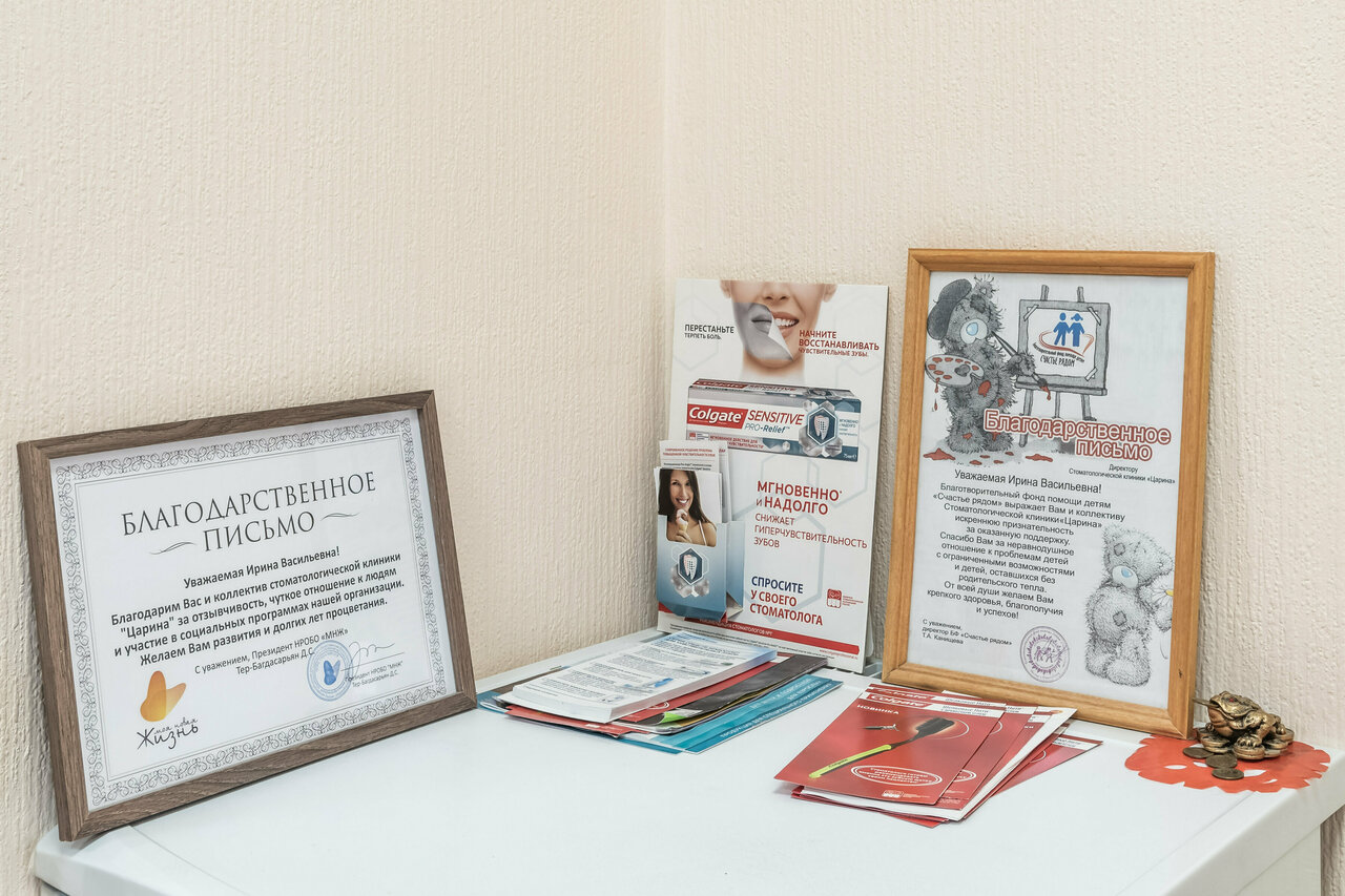 Посещаю клинику более 8 лет. Рекомендую всем своим знакомым всегда. Ценность в высоком профессионализме врачей и в бережномом отношении к пациенту, к его здоровью! Врачи Ирина Васильевна и Оксана Викторовна лучшие стоматологи которых я встреча в своей жизни! Низкий им поклон! Клинике Царине желаю процветания и благополучия на долгие годы! Вы делаете людей здоровыми и счастливыми! P. S. : расценки на услуги более чем приемлемые на рынке стоматологических услуг.