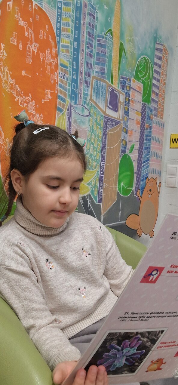 - Отзывчивые администраторы (помощь с записью, напоминания).; Профессиональные и доброжелательные врачи.; Игровая зона и мультики во время приема.; Внимательное отношение к родителям.; Возможность преодоления страха перед стоматологом.