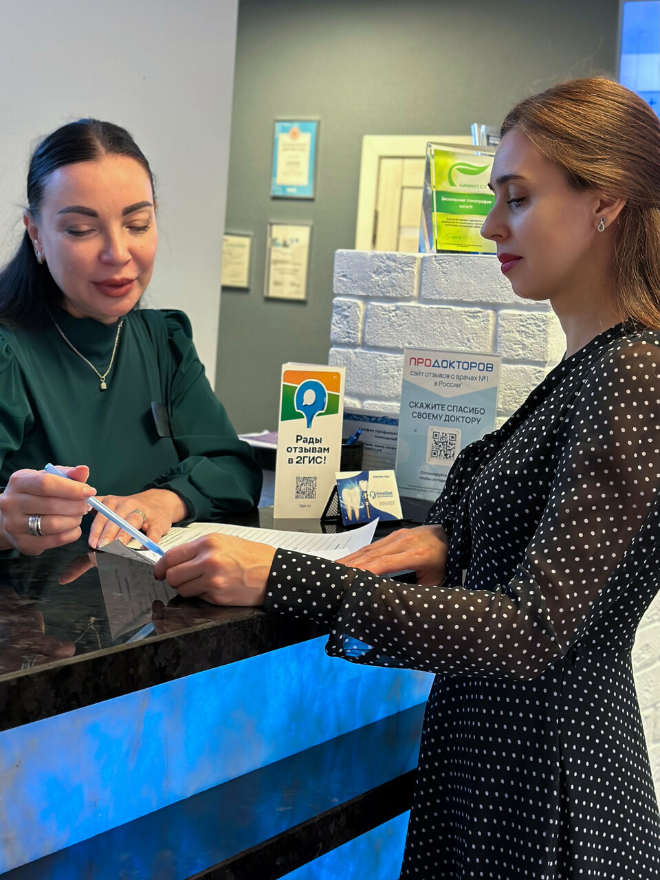 Я посетила данную клинику , чтоб мне поставили протезы. Благодаря, Ревенко Ольге Леонидовне работа прошла быстрой и безболезненной. Мне очень нравится сама клиника своим интерьером, доброжелательности, профессионализмом и умение работать с клиентами. Цены были приемлемые , проблем с этим не возникло) Сама стоматология, записала меня на прием быстро. Еще раз огромное спасибо всем, кто был ко мне внимателен, и доброжелателен. ♥️
