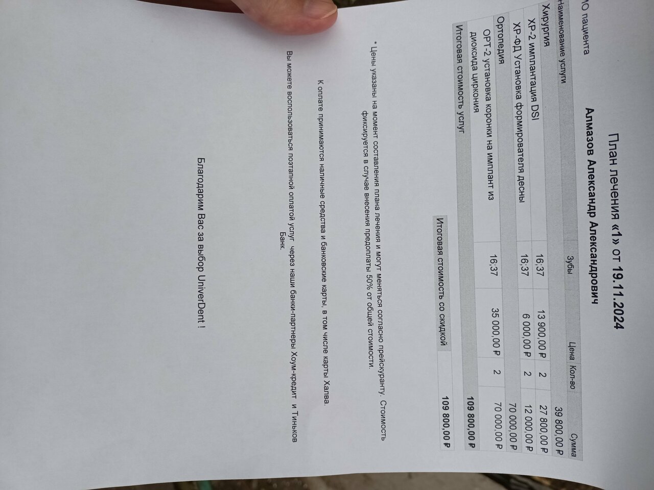 - Подробный план лечения с прозрачными ценами.
