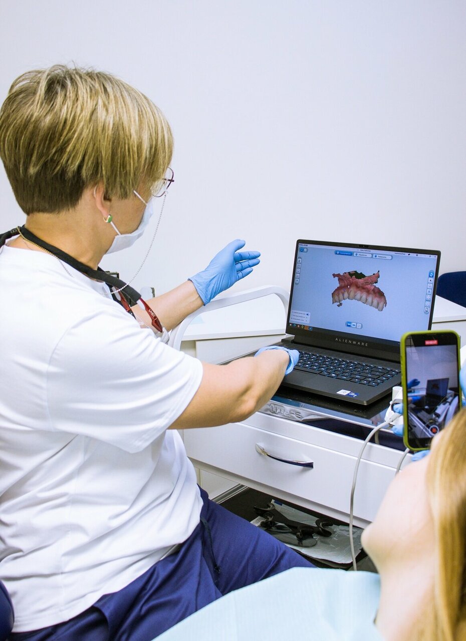 - Восстановление зубного ряда условно-съемным протезом с опорой на 4, 5, 6 имплантах с использованием ортопедического шаблона, постоянный 62000₽