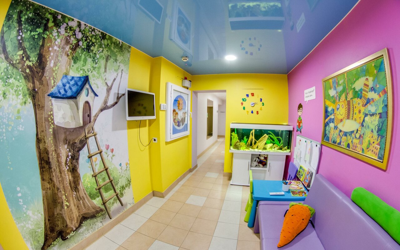 - Чистота и уютная зона ожидания для детей (игрушки, аквариум).
