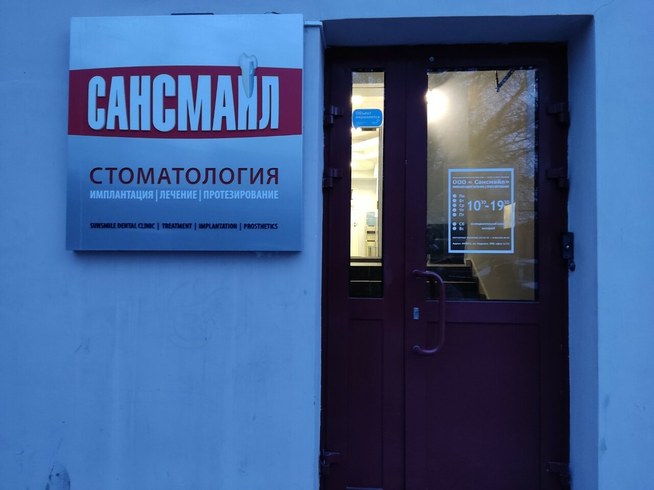 Информация о стоматологии Сансмайл актуализирована в ноябре 2025 года: