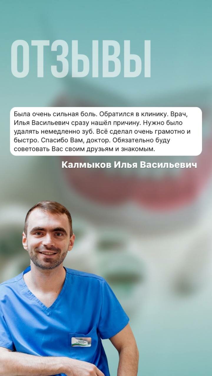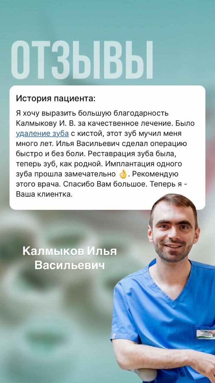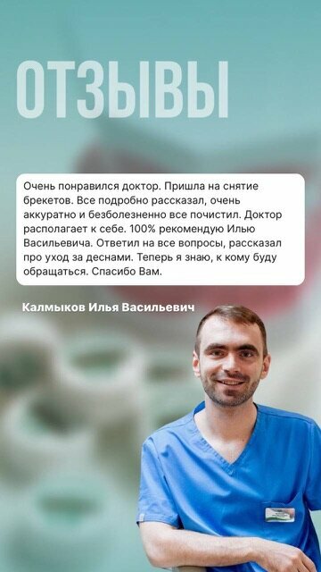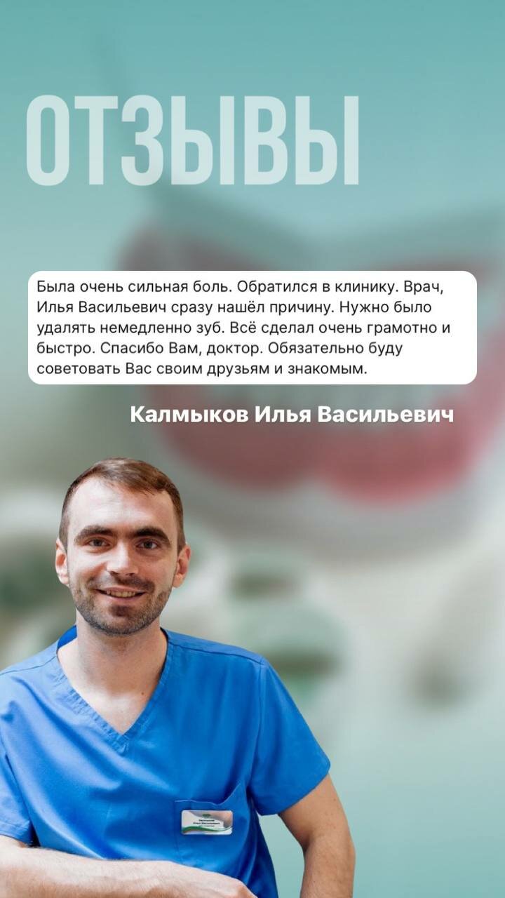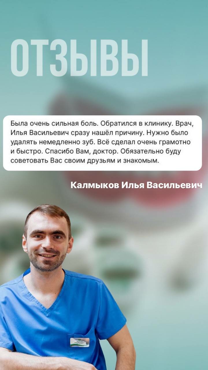 Только положительные эмоции. Илья Васильевич Калмыков очень-очень хороший специалист! Профессионально расскажит и полечит без боли и очень быстро и за вменяемые деньги.