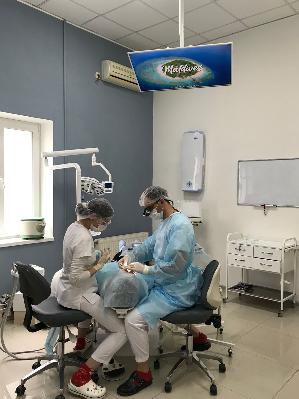 Мне абсолютно все понравилось. Приветливый персонал, в Ватсапе напоминают о предстоящем приеме, убирают каждую соринку, холят и лелеют клиента. Стоматолог все объясняет, рекомендации дают в распечатке. Процедуру выполняют с обезболиванием, очень комфортно. Лежишь себе, телевизор смотришь (на потолке), а врач делает свое дело. Помогают несколько медсестер. Работают под микроскопом, тут же можно сделать рентген, не вставая с кресла. Супер! Ценник конечно не низкий, но оно того стоит.