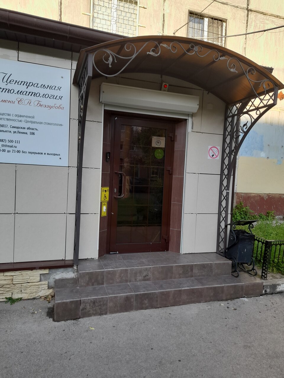 К сожалению, вход в клинику не оборудован для инвалидных колясок. Центральная стоматология гарантирует качественное лечение и заботится о здоровье и красоте улыбки своих пациентов.