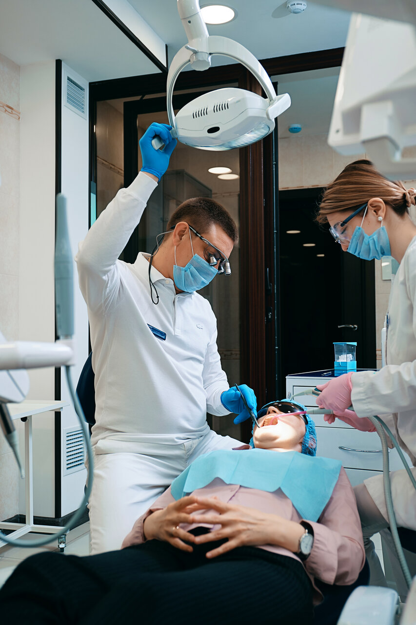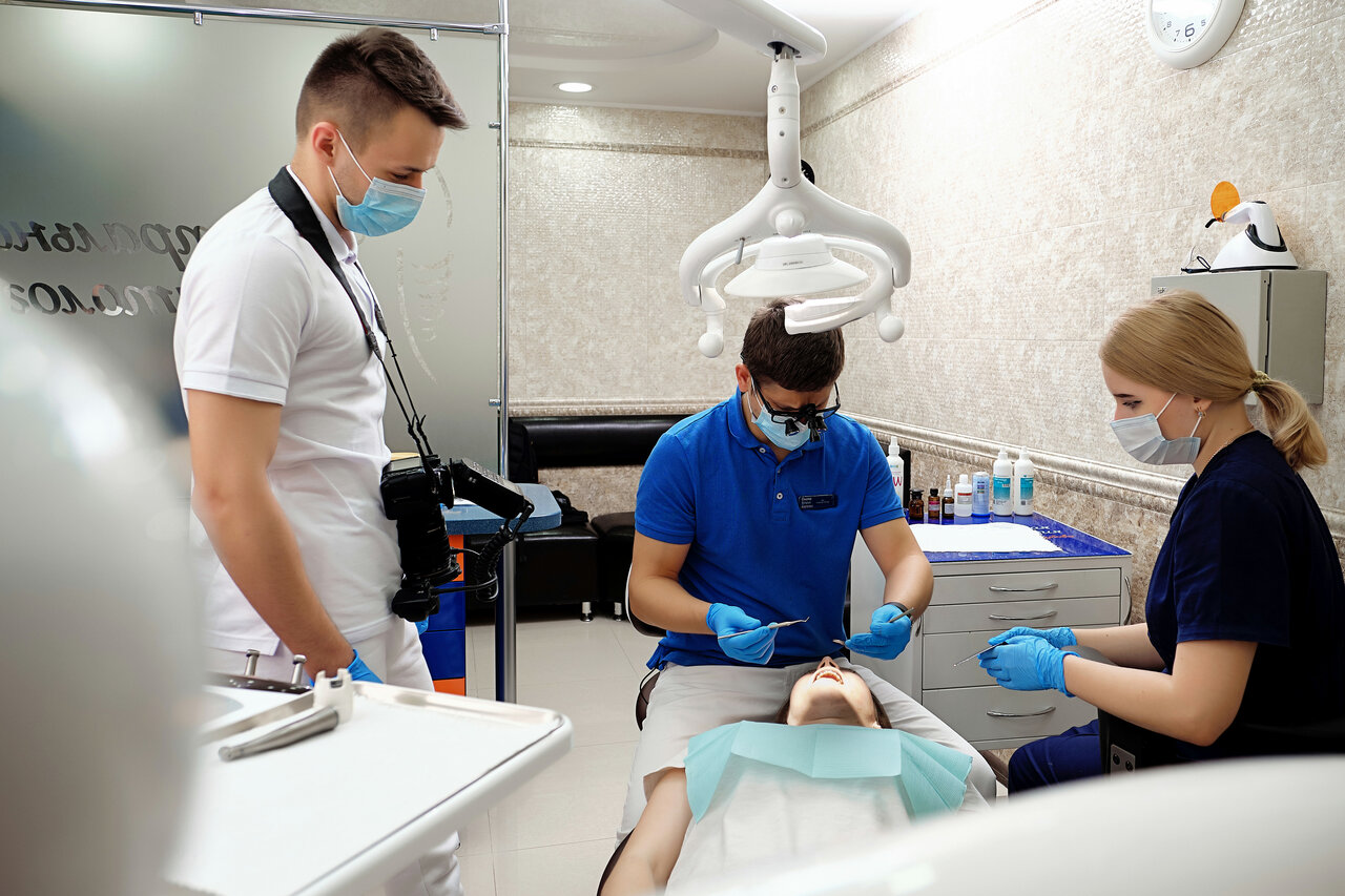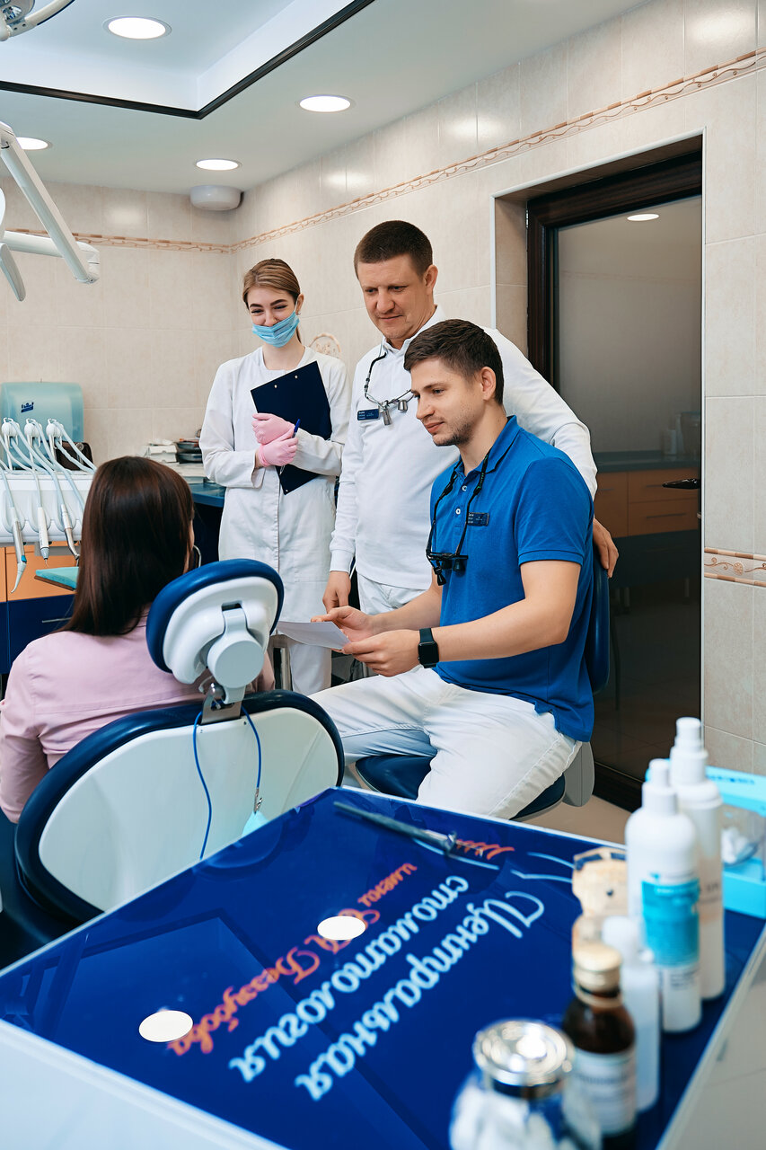 - Слаженная работа команды врачей при сложных процедурах (имплантация).