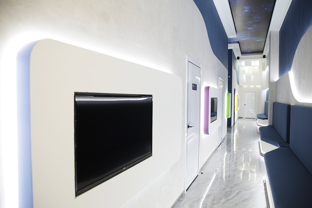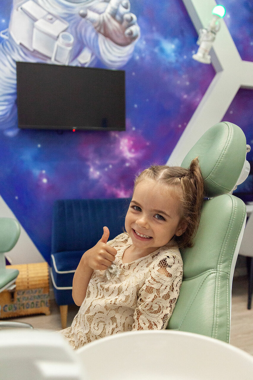Замечательная клиника. Тут сделано всё чтобы приём ребёнка у стоматолога прошёл как приятное воспоминание. Робот с которым можно пообщаться. В момент нахождения в кресле,ребёнок может смотреть мультики, после можно взять подарок.