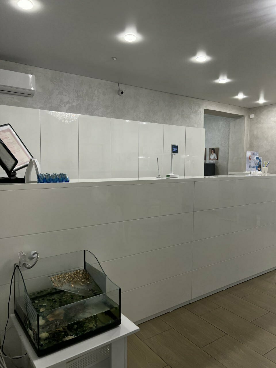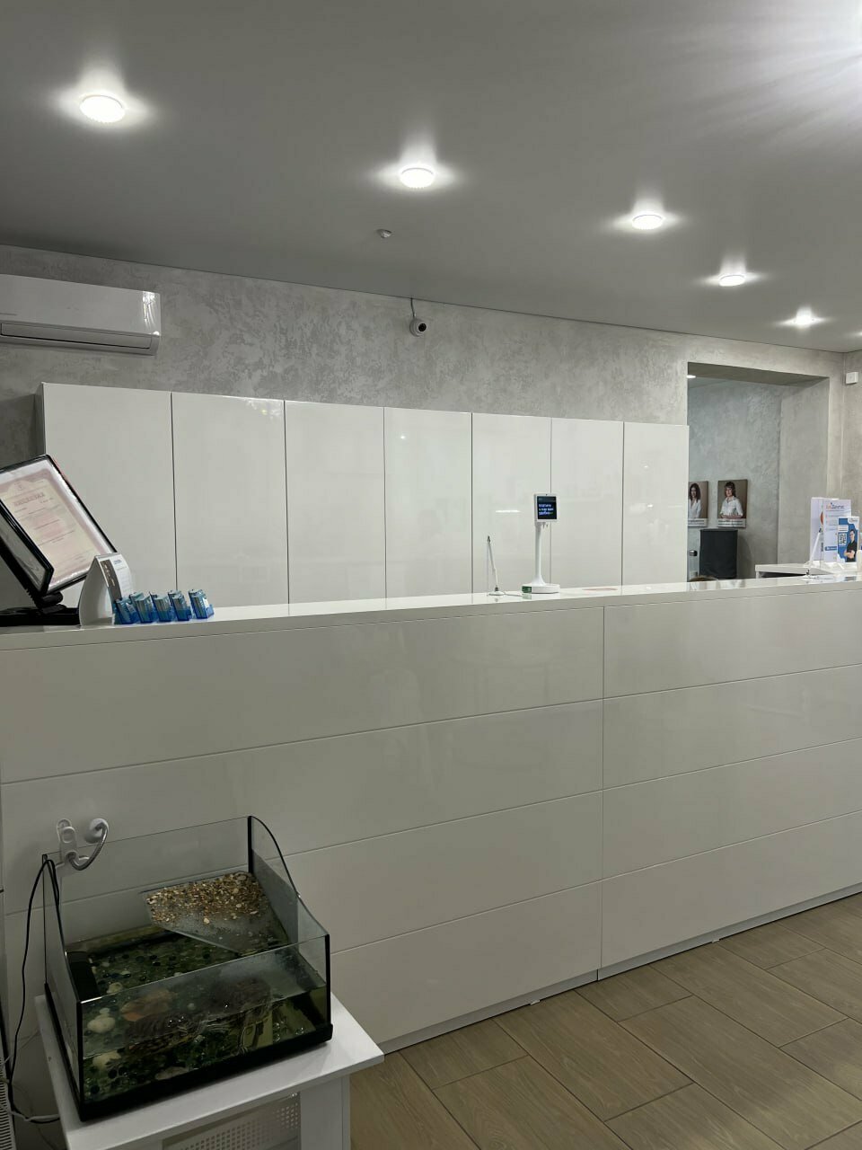 - Приятная атмосфера в клинике (аквариум с черепашками).