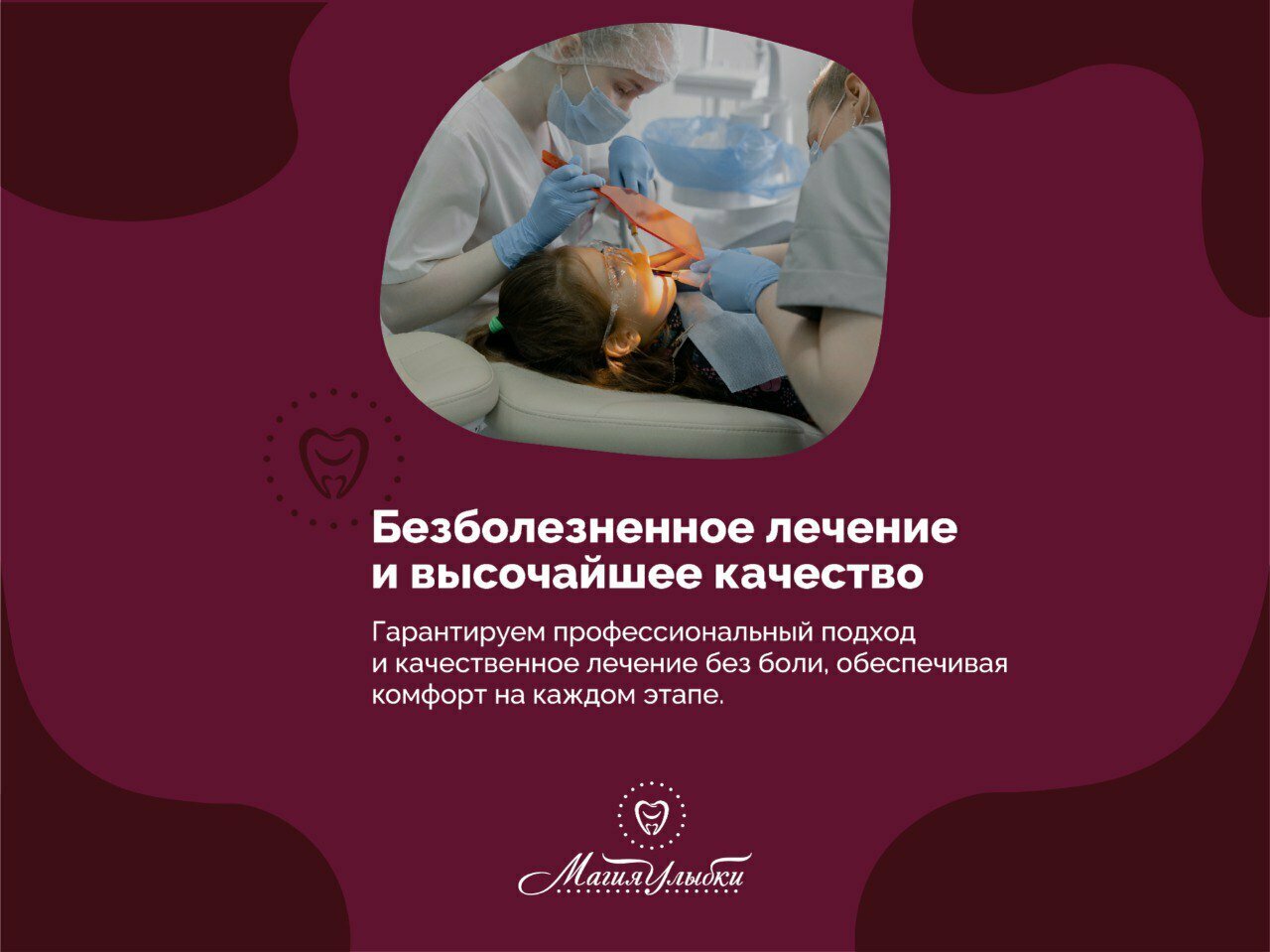 - Качественное лечение зубов без боли.