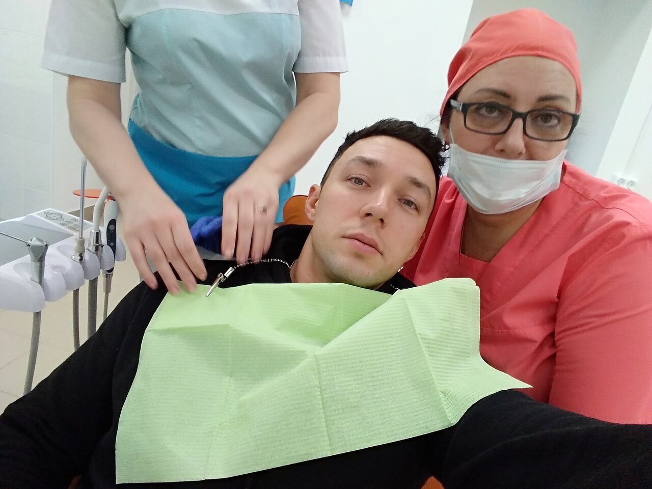 Делала чистку зубов, администратор и помощник зубного, оборудование не очень новое, пока делали чистку ,намочили меня ,больше не пойду