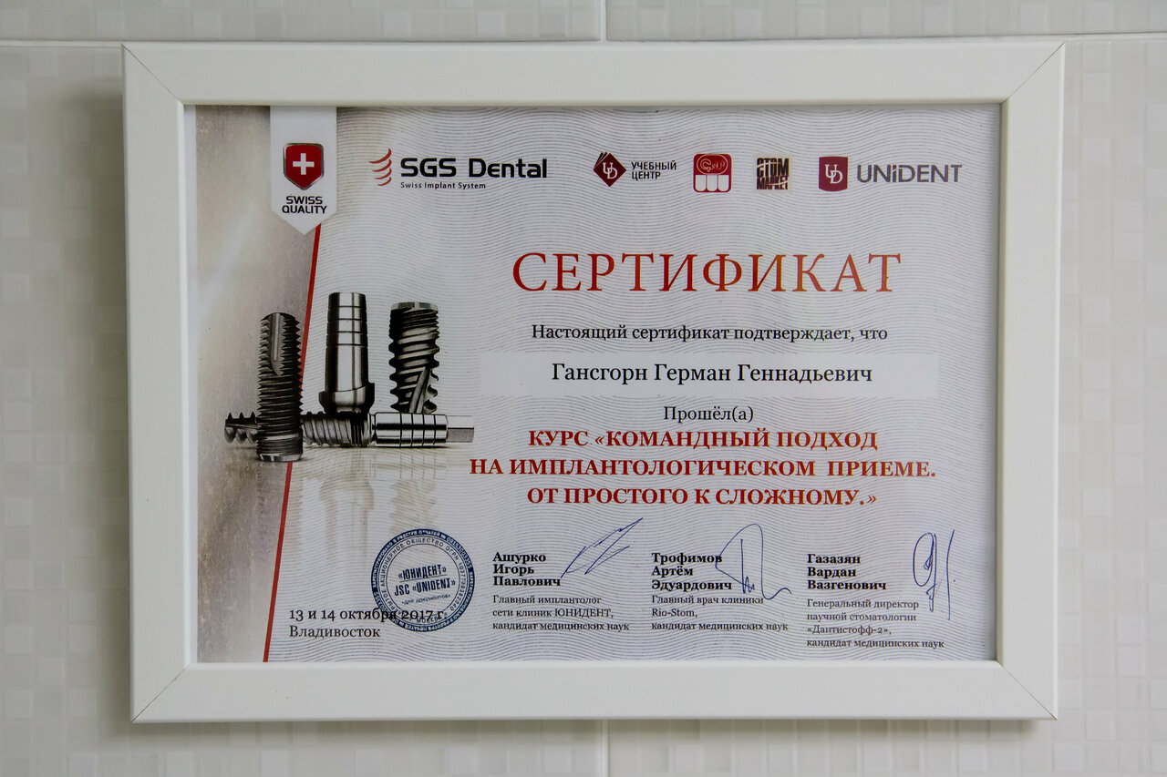 В данной клинике ставила импланты, доктор Гансгорн Г..Г. сделала все на профессиональном уровне. Сейчас следующий этап-коронки. Советую данную клинику.