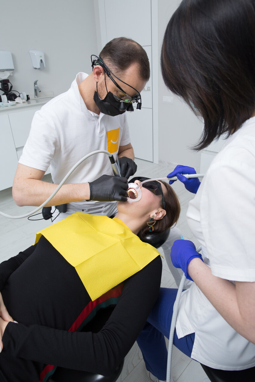 Основные направления работы стоматологии включают: — Общую стоматологию (лечение кариеса, пломбирование, гигиену полости рта, удаление зубов). — Ортодонтию (исправление прикуса брекетами и элайнерами). — Хирургическую стоматологию (имплантацию, костную пластику, удаление зубов). — Эстетическую стоматологию (отбеливание, виниры, коронки, реставрацию зубов). — Эндодонтию (лечение каналов, периодонтита, кисты зуба под микроскопом). — Протезирование и гнатологию.